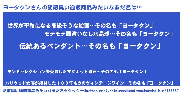 | 意味不明あだ名 | 『とにかく怪しいヨータクン』 |