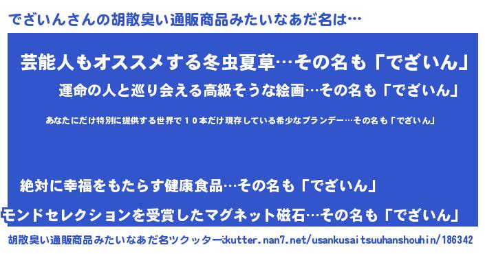 | 意味不明あだ名 | 『住所不定無職でざいん(85歳)』 |