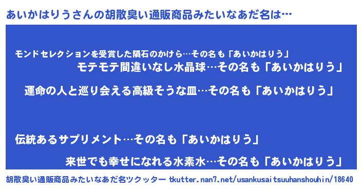| 意味不明あだ名 | 『あいかはりうフォーエバー』 |