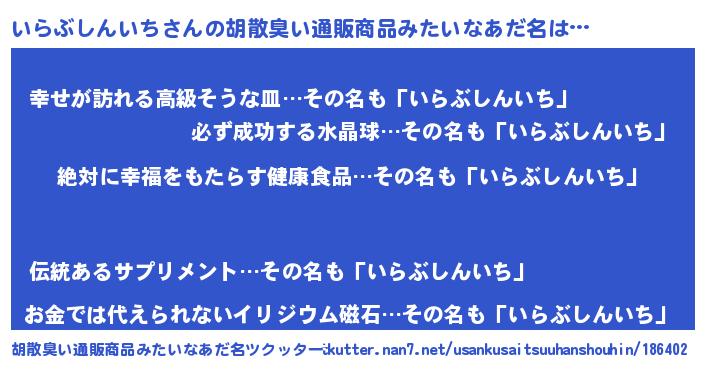 | 意味不明あだ名 | 『永久保存いらぶしんいち』 |