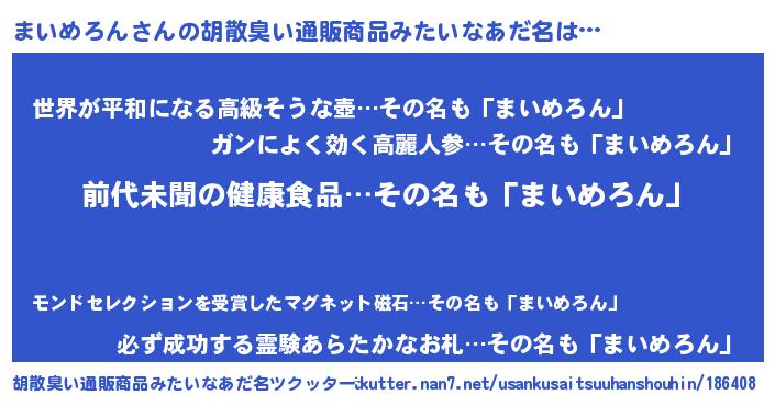 | 意味不明あだ名 | 『永久保存まいめろん』『自称まいめろん』 |