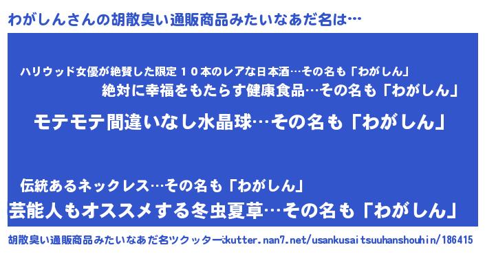 わがしんさんの胡散臭い通販商品みたいなあだ名をツクッター!