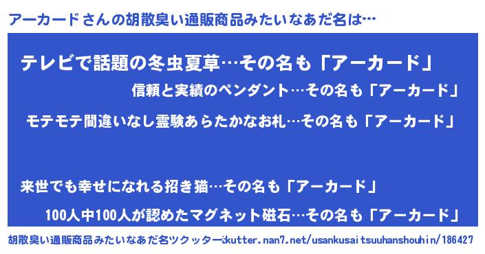 | 男性向けラノベタイトル風あだ名 | 『アーカードアートオンライン』 |