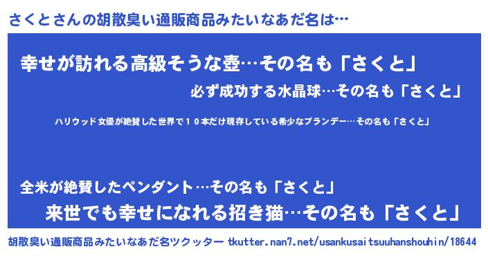 | 意味不明あだ名 | 『住所不定無職さくと(86歳)』 |