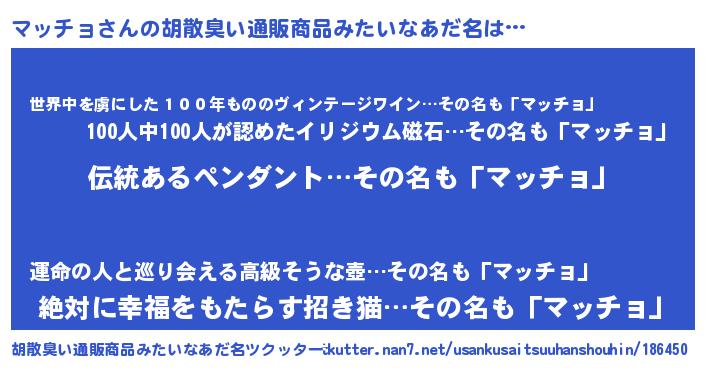 | ヘコむあだ名 | 『マッぷりん』『マッチョ(笑)』 |