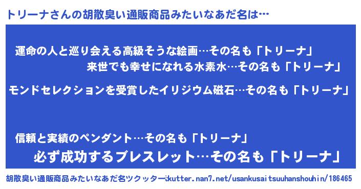 | 男性向けラノベタイトル風あだ名 | 『うちのトリーナが世界を掌握している!』 |