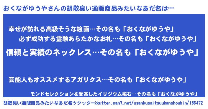 | 意味不明あだ名 | 『とにかく怪しいおくながゆうや』 |