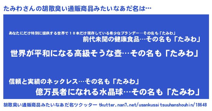 | 意味不明あだ名 | 『たみわフォーエバー』『ペロリンたみわ』 |