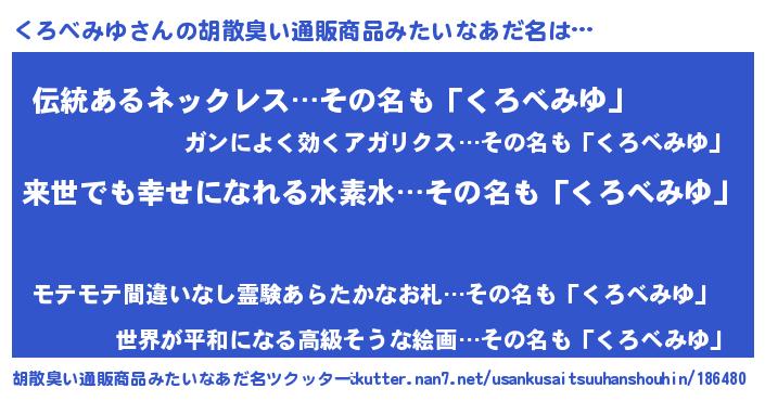 | 意味不明あだ名 | 『永久保存くろべみゆ』『自称くろべみゆ』 |