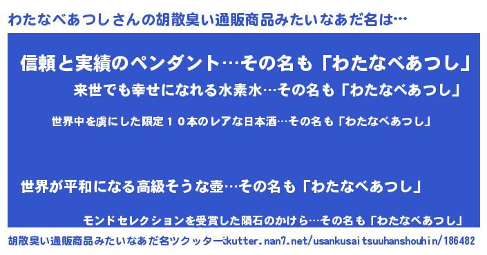 | ヘコむあだ名 | 『わたっぺ』『わたなべあつし(震え声)』 |