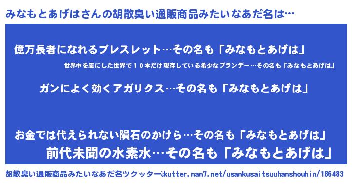 | 女子向けラノベタイトル風あだ名 | 『みなもとあげはなんてお断りですっ。』 |