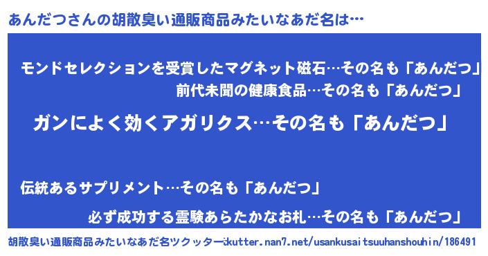 | 恥ずかしいあだ名 | 『アンダツデラックス』『あんちん』 |