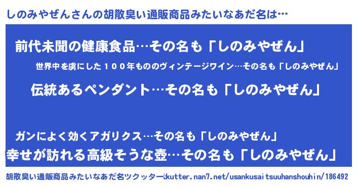 | 意味不明あだ名 | 『とにかく怪しいしのみやぜん』 |