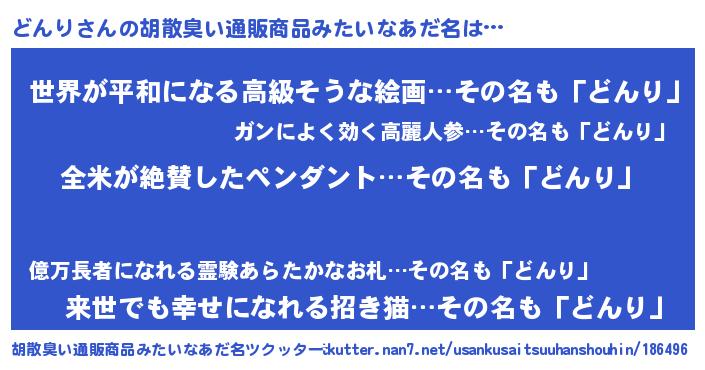 | 意味不明あだ名 | 『とにかく怪しいどんり』『自称どんり』 |