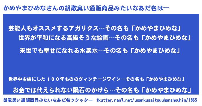 | 意味不明あだ名 | 『永久保存かめやまひめな』 |