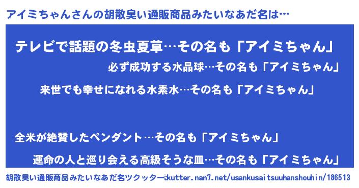 | 意味不明あだ名 | 『永久保存アイミちゃん』 |
