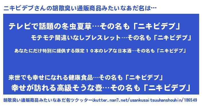 | 欧米人風あだ名 | 『ダレノガレニキビデブ』 |