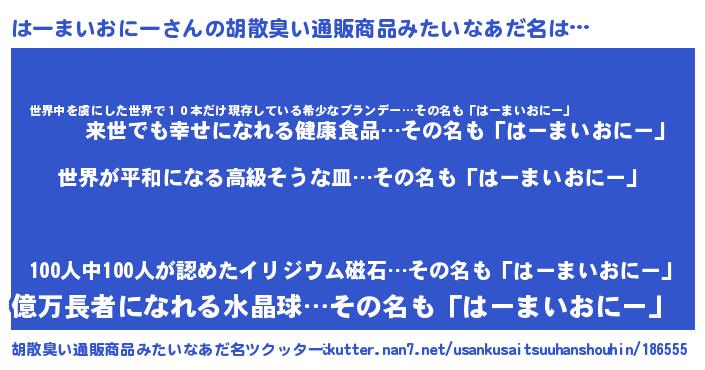 | 欧米人風あだ名 | 『はーまいおにークリステル』 |