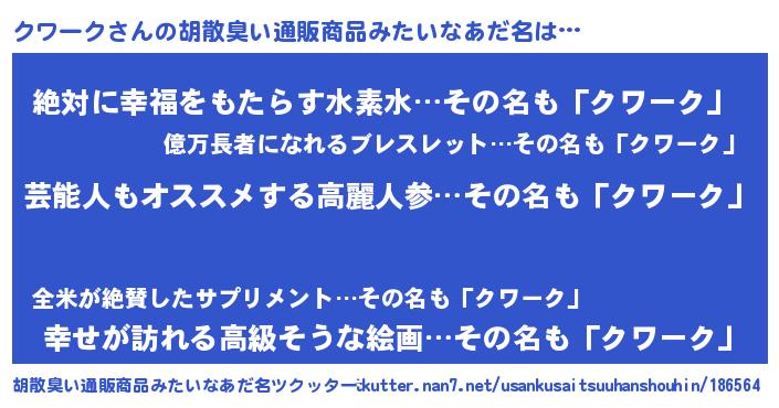 | 女子向けラノベタイトル風あだ名 | 『闇のクワーク』『クワークの雑貨屋さん』 |