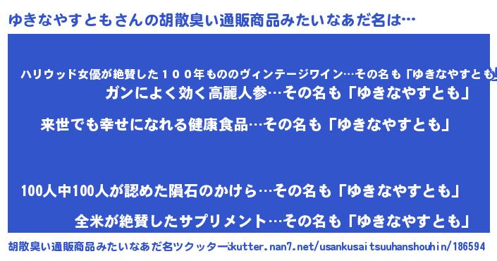 | ヘコむあだ名 | 『ゆきなやすとも(笑)』『ゆき太郎』 |