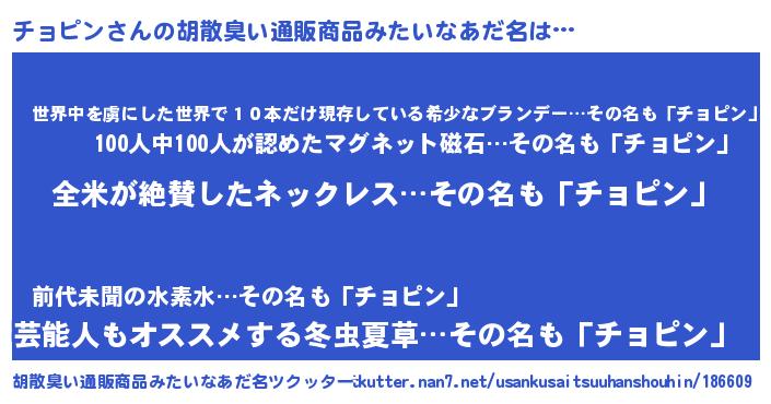 | 女子向けラノベタイトル風あだ名 | 『チョピン様がみてる』『チョピン恋絵巻』 |