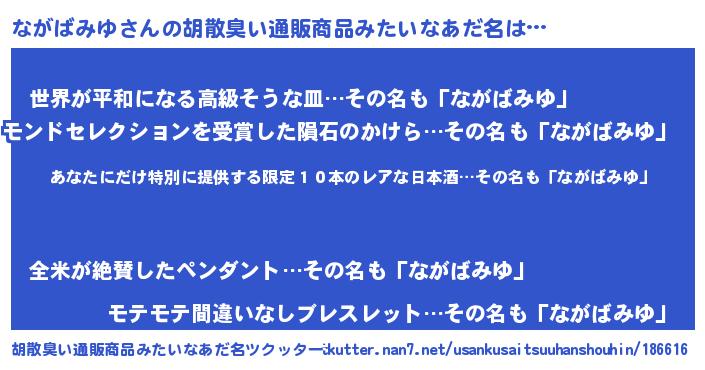 | 恥ずかしいあだ名 | 『ながっちょ』『プリティーながばみゆ』 |