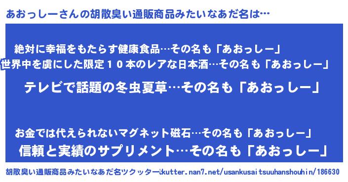 | ヘコむあだ名 | 『あおっしー(震え声)』『あおを』 |