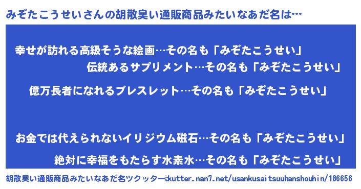 | ヒーロー風カッコイイあだ名 | 『スーパーミゾタコウセイ』 |