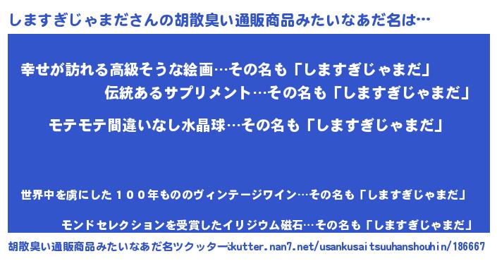 | 男性向けラノベタイトル風あだ名 | 『シマスギジャマダアートオンライン』 |