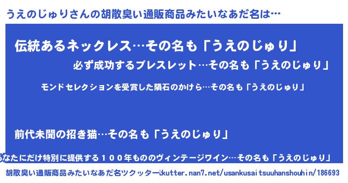 | 意味不明あだ名 | 『眠気覚ましガムうえのじゅり味』 |
