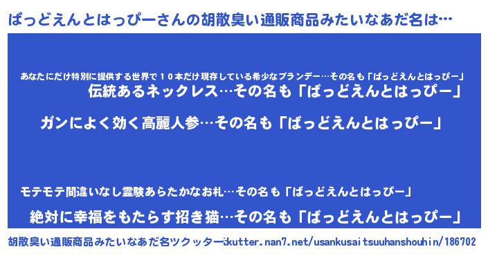 | 意味不明あだ名 | 『自称ばっどえんとはっぴー』 |