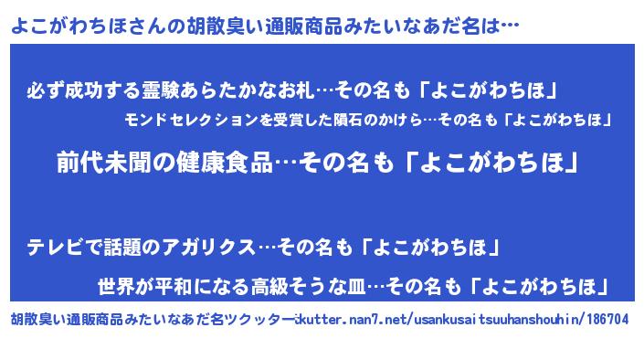 | 欧米人風あだ名 | 『ダルビッシュよこがわちほ』 |