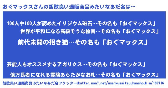 | 意味不明あだ名 | 『永久保存おぐマックス』 |