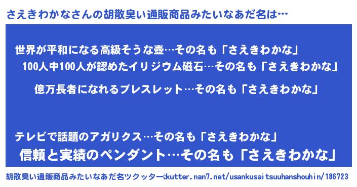 | 肩書あだ名 | 『さえきわかなCEO』『さえきわかな大統領』 |