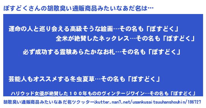 | 伝説のあだ名 | 『伝説のスナイパーぽすどく』 |