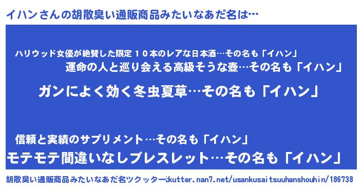| 恥ずかしいあだ名 | 『イハンデラックス』『プリティーイハン』 |