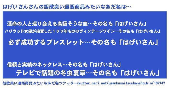 | 意味不明あだ名 | 『めかぶ科はげいさん属』 |