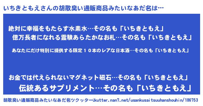 | ヘコむあだ名 | 『いちきともえ(爆)』『いちっぺ』 |