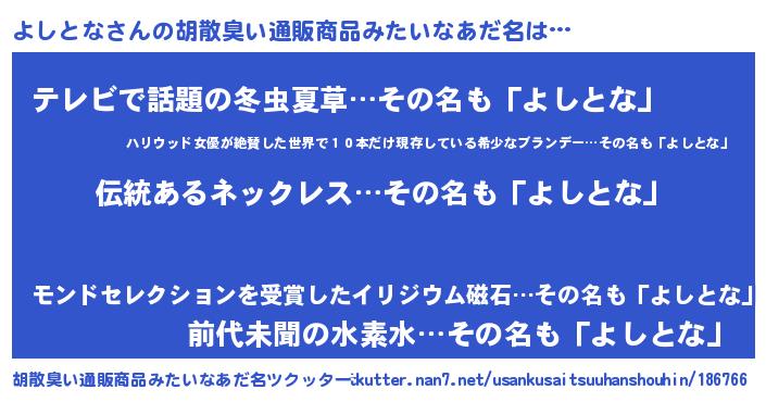 | ヘコむあだ名 | 『よしっ子』『よしとな(遠い目)』 |