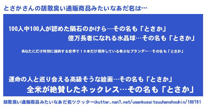 | 意味不明あだ名 | 『住所不定無職とさか(71歳)』 |