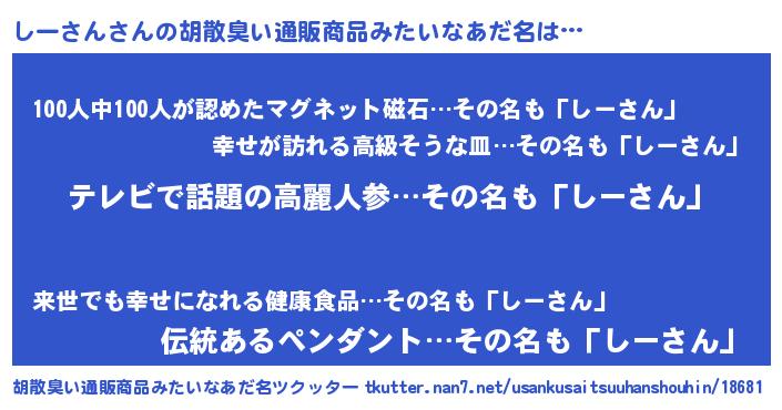 | ヘコむあだ名 | 『しーを』『牛乳』『しーっふぃ~』 |