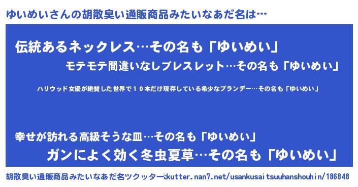 | ヘコむあだ名 | 『ゆいっちょ』『ゆいふぇ~』 |