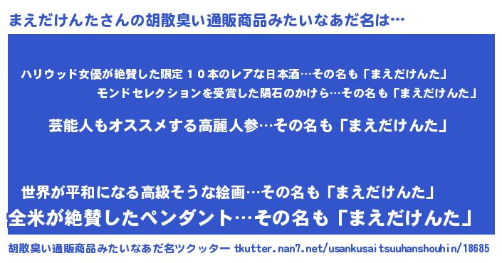 | 意味不明あだ名 | 『自称まえだけんた』 |