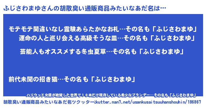 | 意味不明あだ名 | 『自称ふじさわまゆ』 |