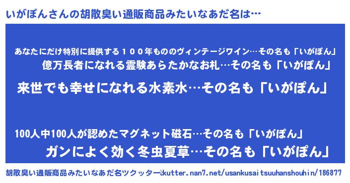 | ヘコむあだ名 | 『いがぽん(震え声)』『いがふぇ~』 |