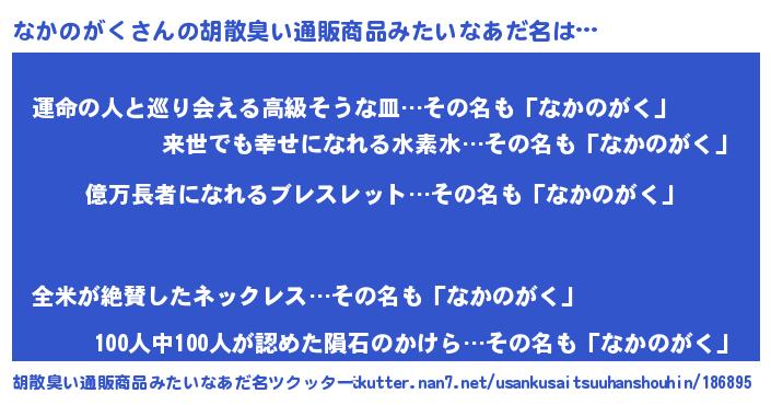 | 欧米人風あだ名 | 『アンジェラ・なかのがく』 |