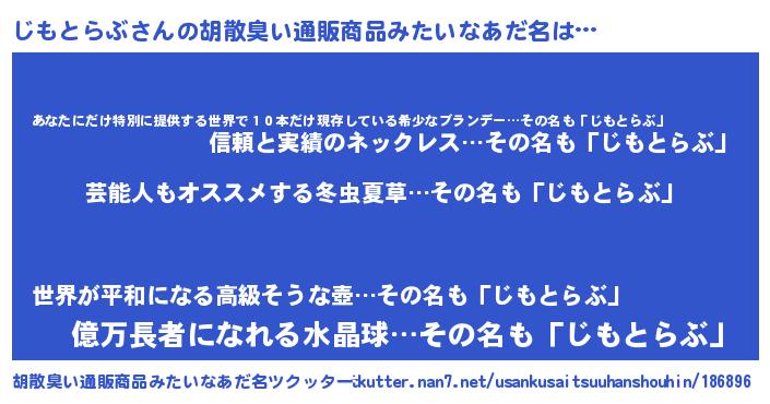 | 男性向けラノベタイトル風あだ名 | 『Re:じもとらぶから始める異世界生活』 |
