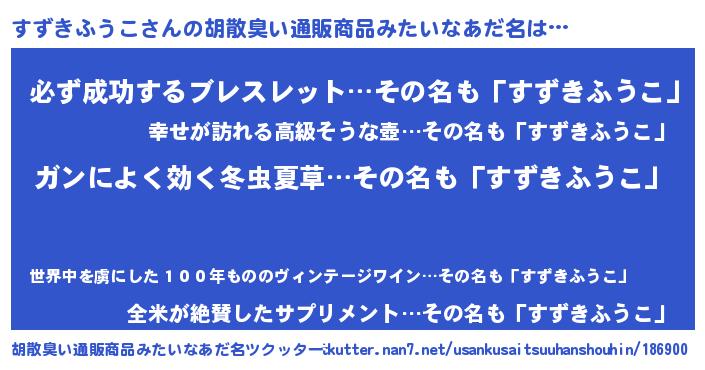 | 意味不明あだ名 | 『エリンギ科すずきふうこ属』 |