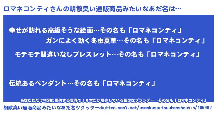| 意味不明あだ名 | 『ペロリンロマネコンティ』 |