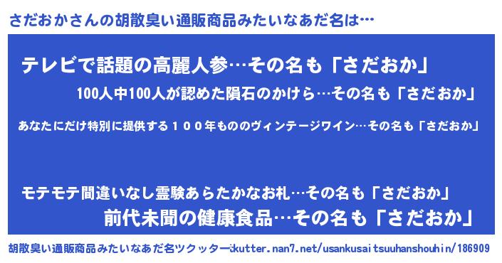 | 意味不明あだ名 | 『住所不定無職さだおか(2歳)』 |